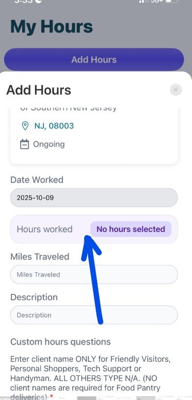 - Next select "Hours worked" and select the number of hours you volunteered.