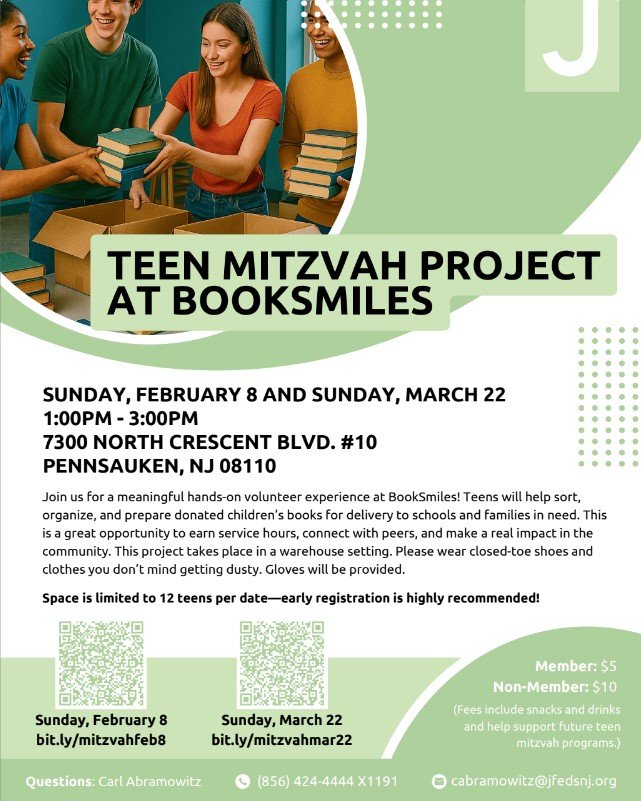 Join the Katz JCC for a meaningful hands-on volunteer experience at BookSmiles. Teens will help sort, organize, and prepare donated children's books to schools and families in need.